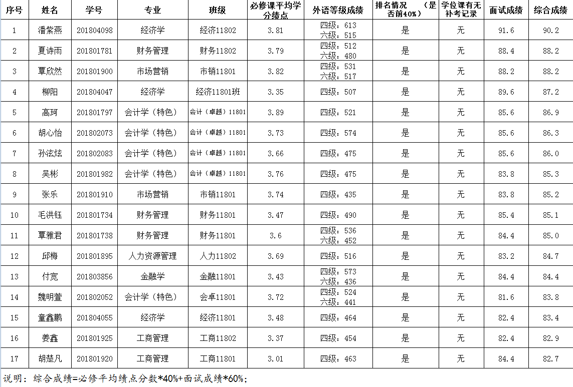 根据《bwin必赢“创新人才培育计划”实施办法》(长大校发〔2019〕129号)文件精神,按照《bwin必赢2018级本科生“创新人才培育计划”选拔工作实施细则》具体安排,经过政策宣传,鼓励动员,学生自愿申报,学院资格审核及综合面试等环节,拟确定以下17名同学为2018级本科生“创新人才培育计划”入选人员,现就详细信息公示如下: