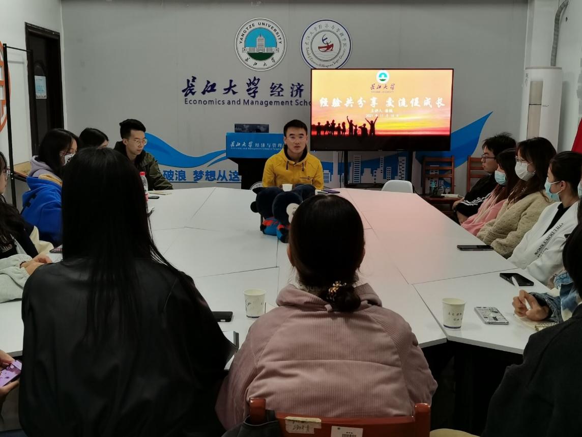 (通讯员:唐丹、牟玉银)2021年11月19日晚,我院在新风会议室举办“朋辈帮扶”经验分享会。本次分享会由2018级“十佳大学生”潘聪同学围绕“以学为主,全面发展”的主题进行个人分享,2020级工商大类同学代表参与本次交流会。