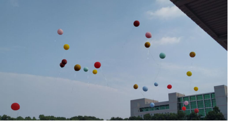 最后,全体师生合唱《我和我的祖国》,并一起放飞了手中写满愿望的气球。在优美的旋律中,缤纷的气球冉冉升空,好似新生们对未来的憧憬与希望慢慢萌发!